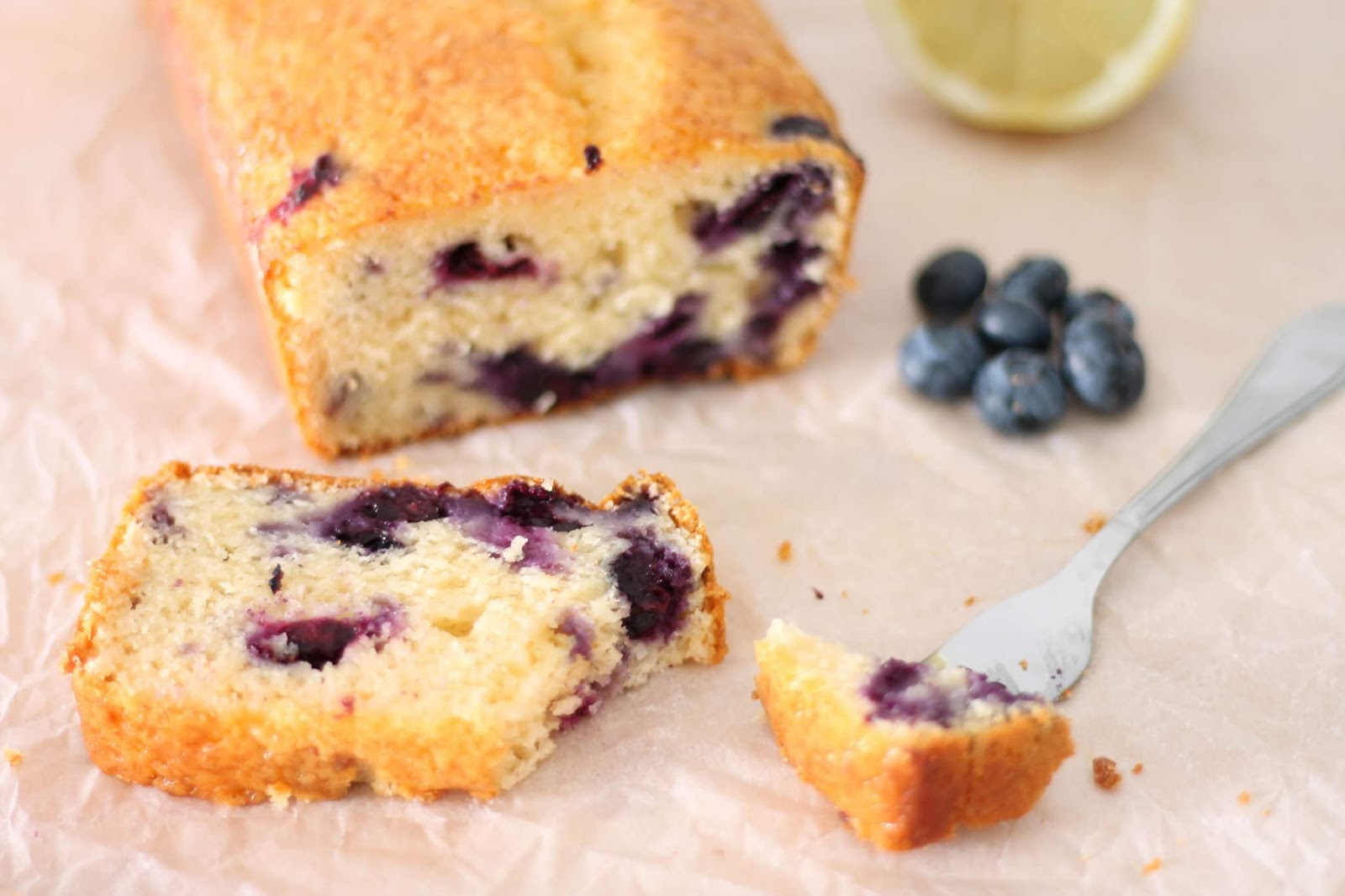 - Transferir a massa para a forma untada com manteiga e farinha (ou forrada com papel vegetal) e cobrir com os restantes mirtilos